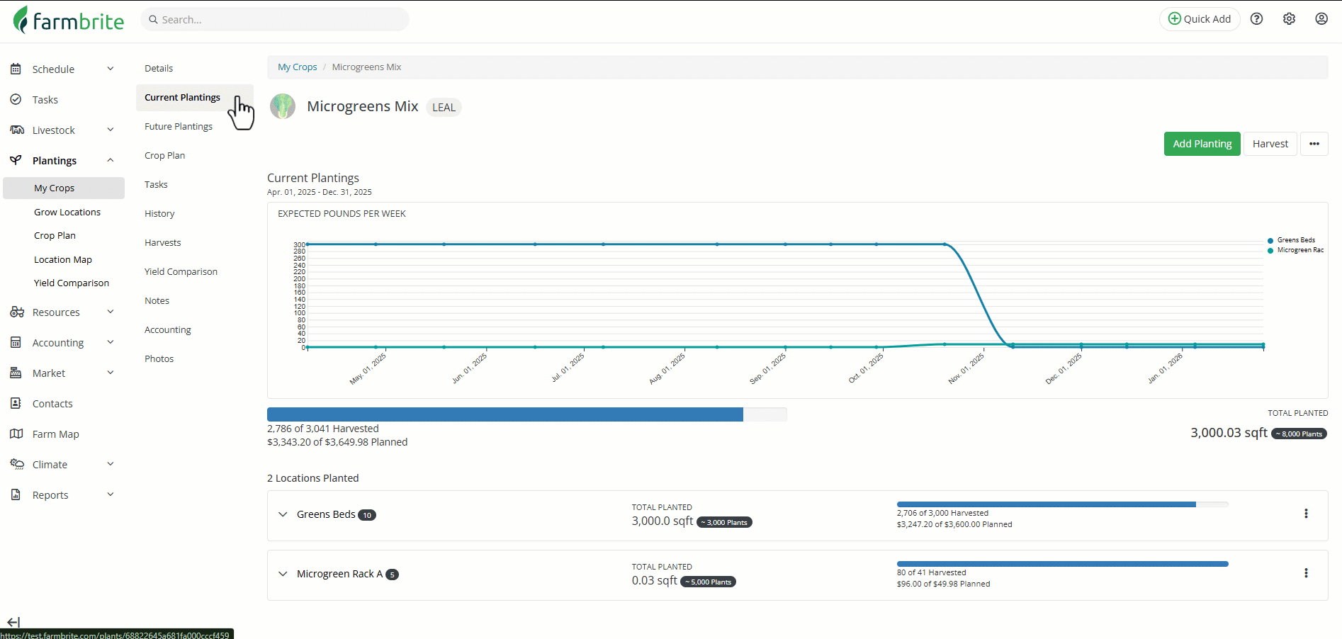 - On a Planting - If you would like to harvest from a specific planting in a specific location, you can navigate to that planting record and add a harvest directly from it.