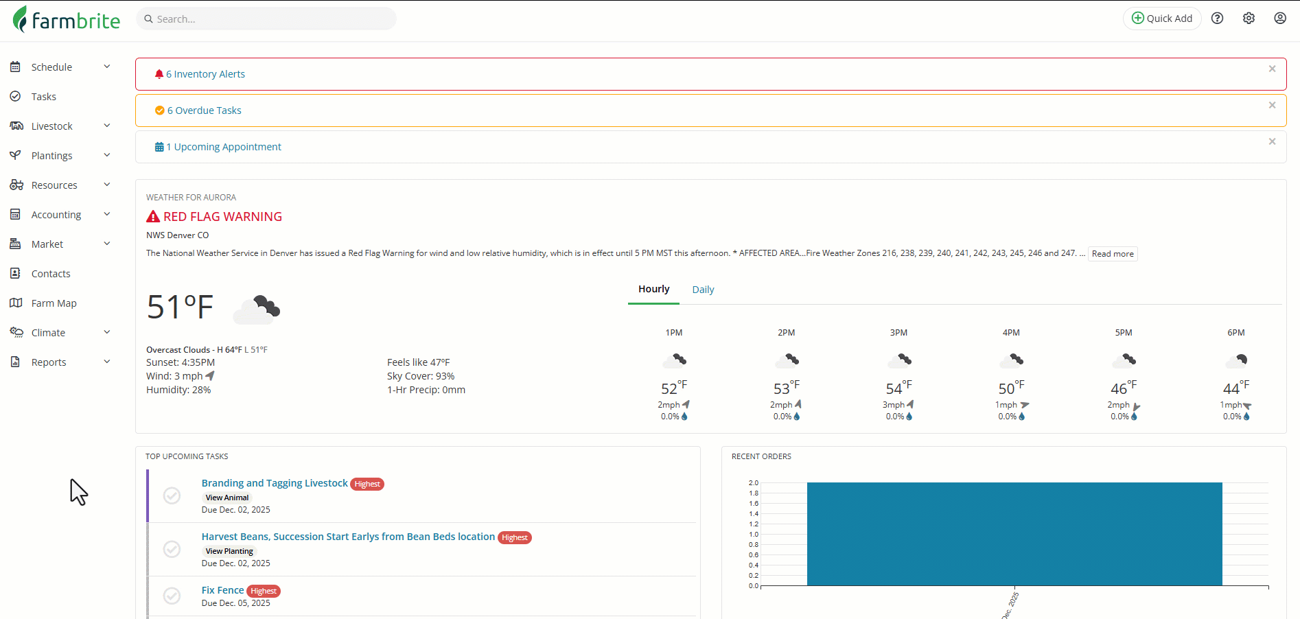 - Using Quick Add - The Quick Add menu in the upper right gives you a shortcut to quickly add a planting from the main Farmbrite dashboard, or really any page in the software. You'll choose both the crop type and the location using this method.