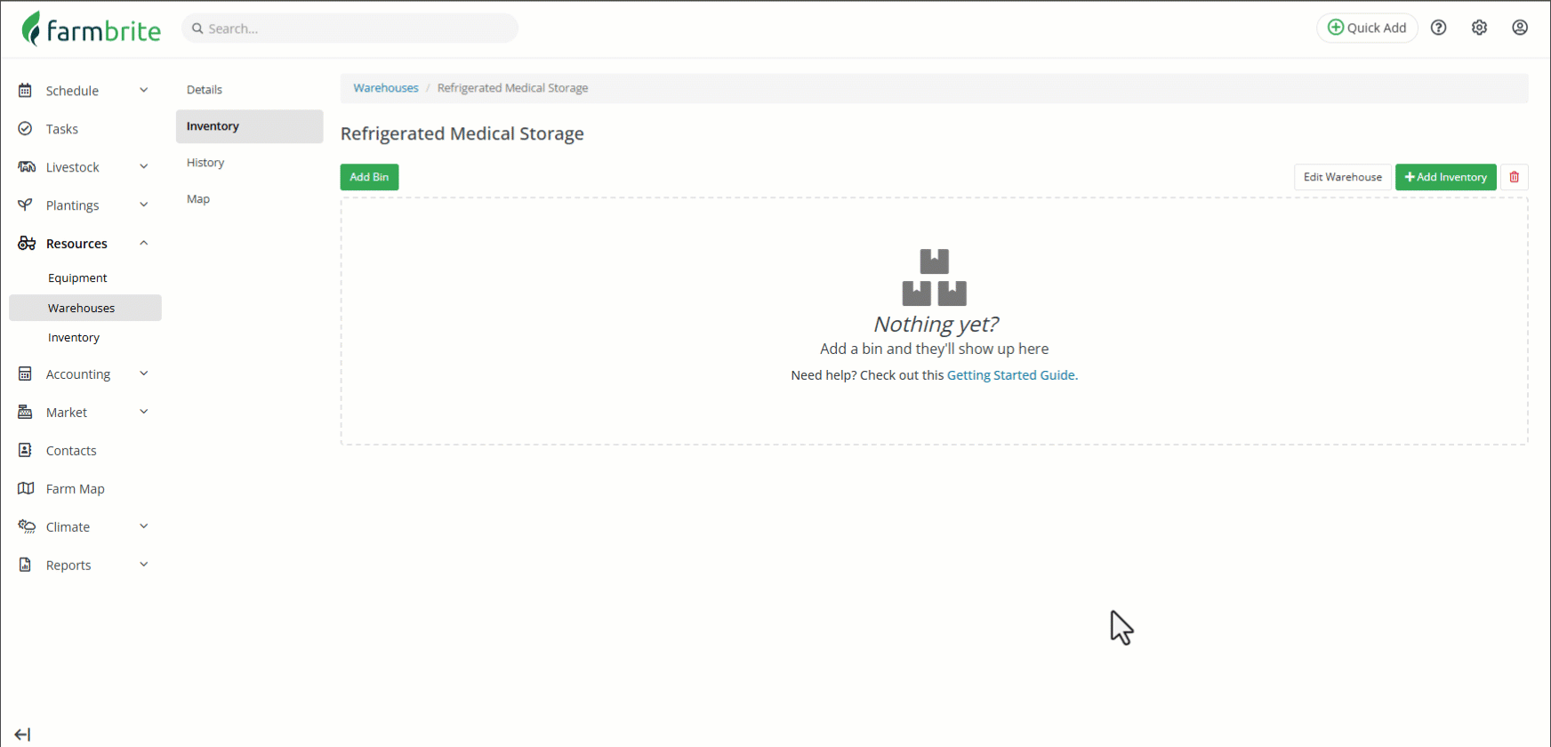 Defining what items can be stored in a location can help you and your farmhands stay organized. You might want to keep hazardous materials separated from other inputs, or create one single storage location for your animal feed and supplements so you always know exactly where to go when it's feeding time. You can define what types of items can be stored in a location to streamline the process of adding your inventory to the warehouse, so whether you are adding from a recent delivery or a harvest, you'll see just the locations and items you need.
