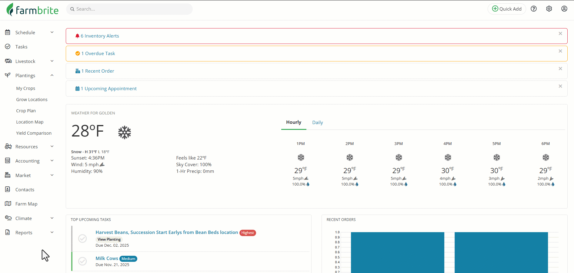 Grow Locations represent any physical area where plants are grown or land is managed on your farm. They are fully customizable, allowing you to model your operation however you'd like.