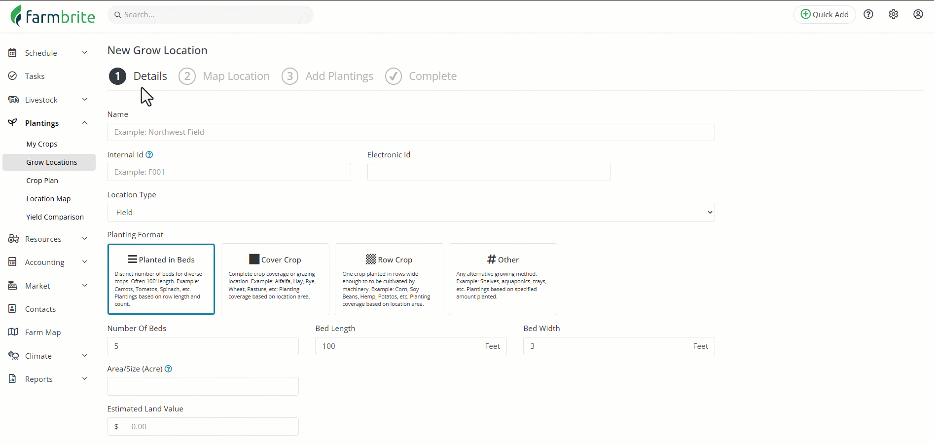 - Location Type - What is this location used for? Is it a field, greenhouse, grow room, or maybe a pasture for grazing?