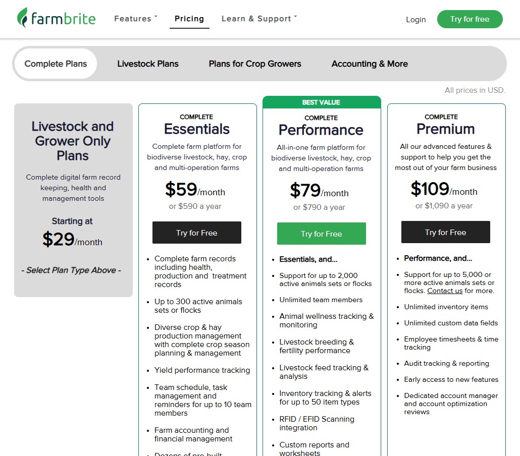 Farmbrite offers multiple different subscription plans with various features. These tiers give you options to find the right plan at the right price for you. If you initially opened your account on an Essentials or Performance plan and have expanded your business operations, you might want to upgrade to a Premium plan to add more users, animals, inventory items, and advanced capabilities.